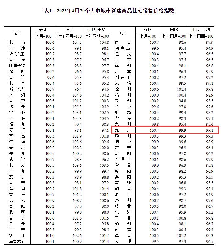 權(quán)威數(shù)據(jù)!4月九江新房售價環(huán)比上漲0.4%,二手房售價環(huán)比上漲0.3%!70城市商品房售價環(huán)比整體漲幅回落!
